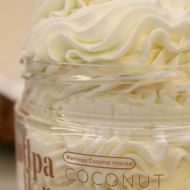 Feche os olhos e sinta a calmaria de um fim de tarde leve. A Manteiga Corporal Coconut tem textura cremosa que envolve a pele com hidratação intensa, enquanto o frescor do coco se mistura ao toque delicado da lavanda, criando uma sensação imediata de aconchego.